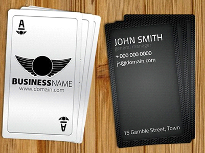 The unique pattern of playing cards will be your trump card in the sleeve. One of the most unusual business card templates we have ever seen. It comes complete with two PSD files (front and back), dieline and path. The design measurements are 3.5 x 2 inches (0.25 inches cut-off).