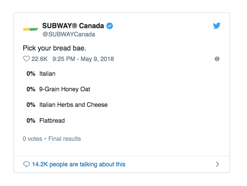 Subway has experienced it first-hand that trying to use slang that is slightly dated will seriously deteriorate engagement.